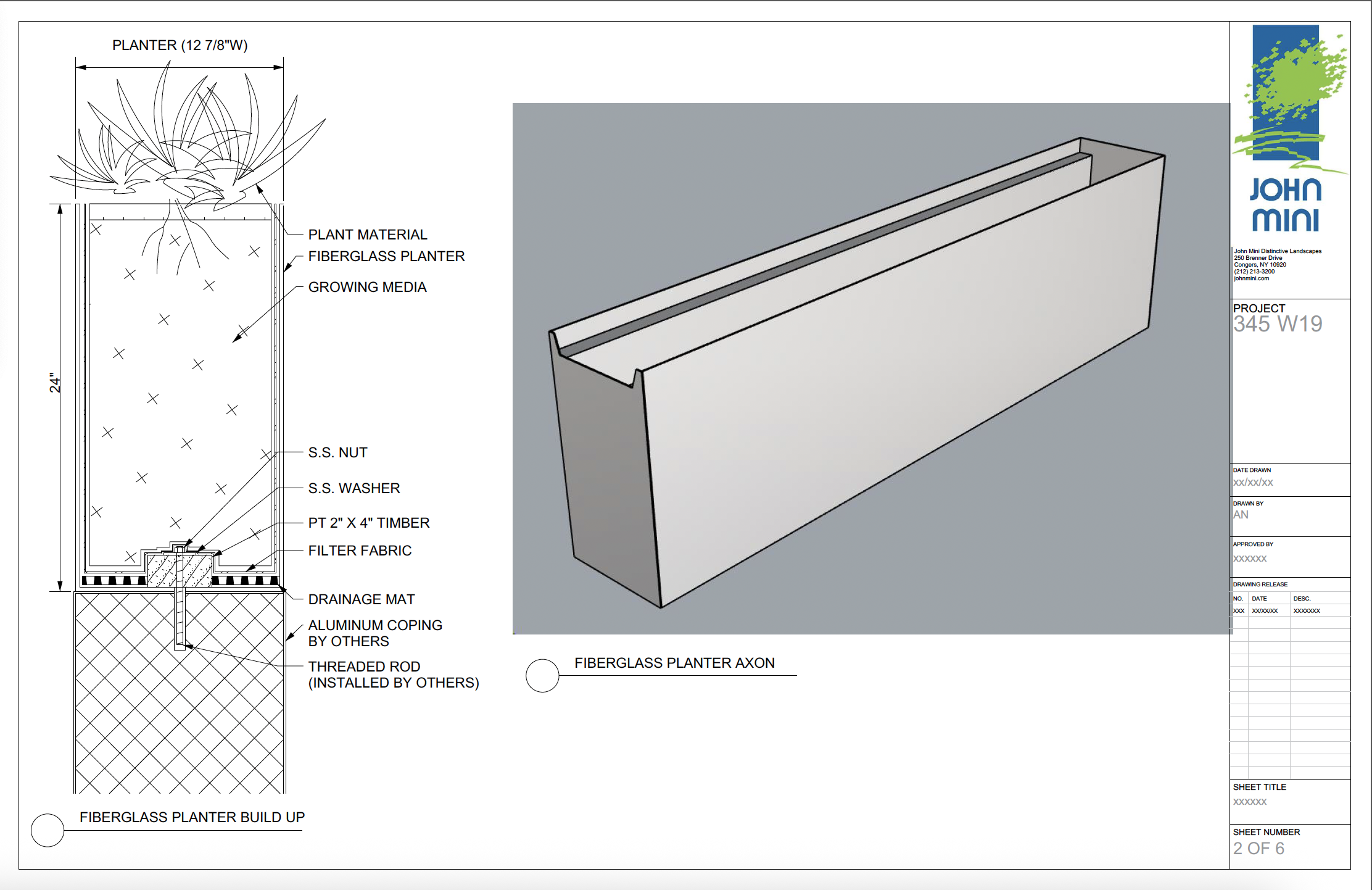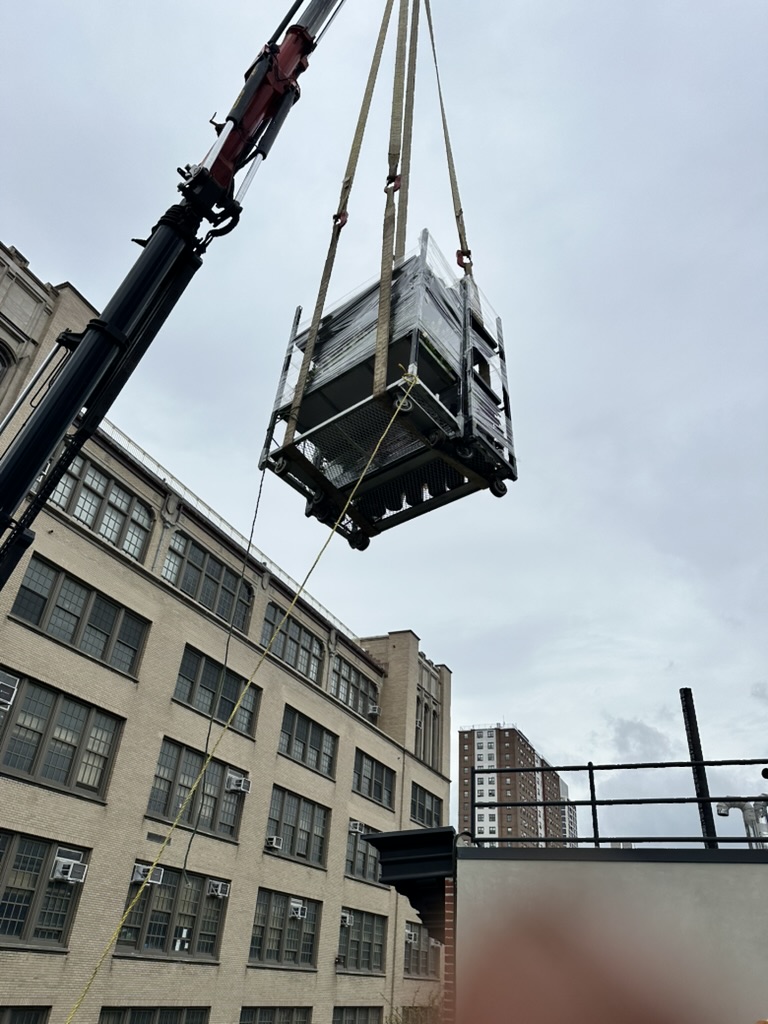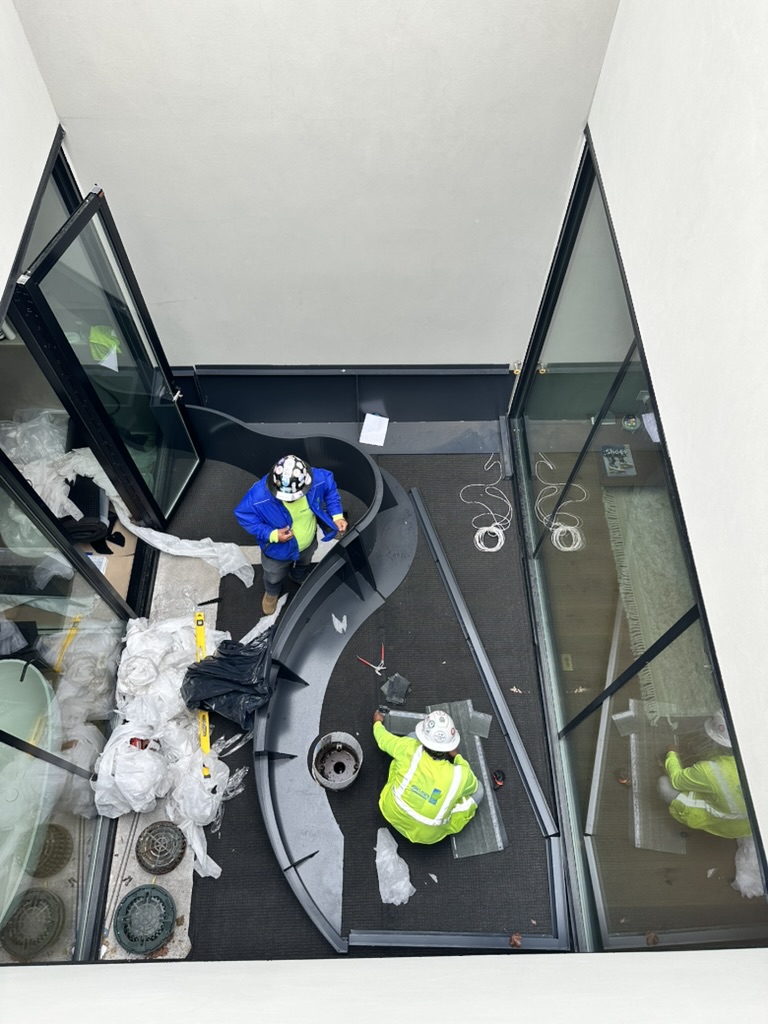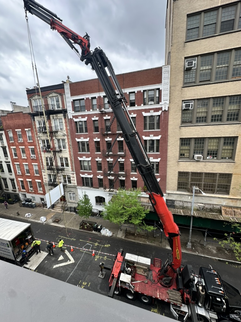 The planter and plant materials were craned to the 6th floor using a knuckle boom, an operation I coordinated.