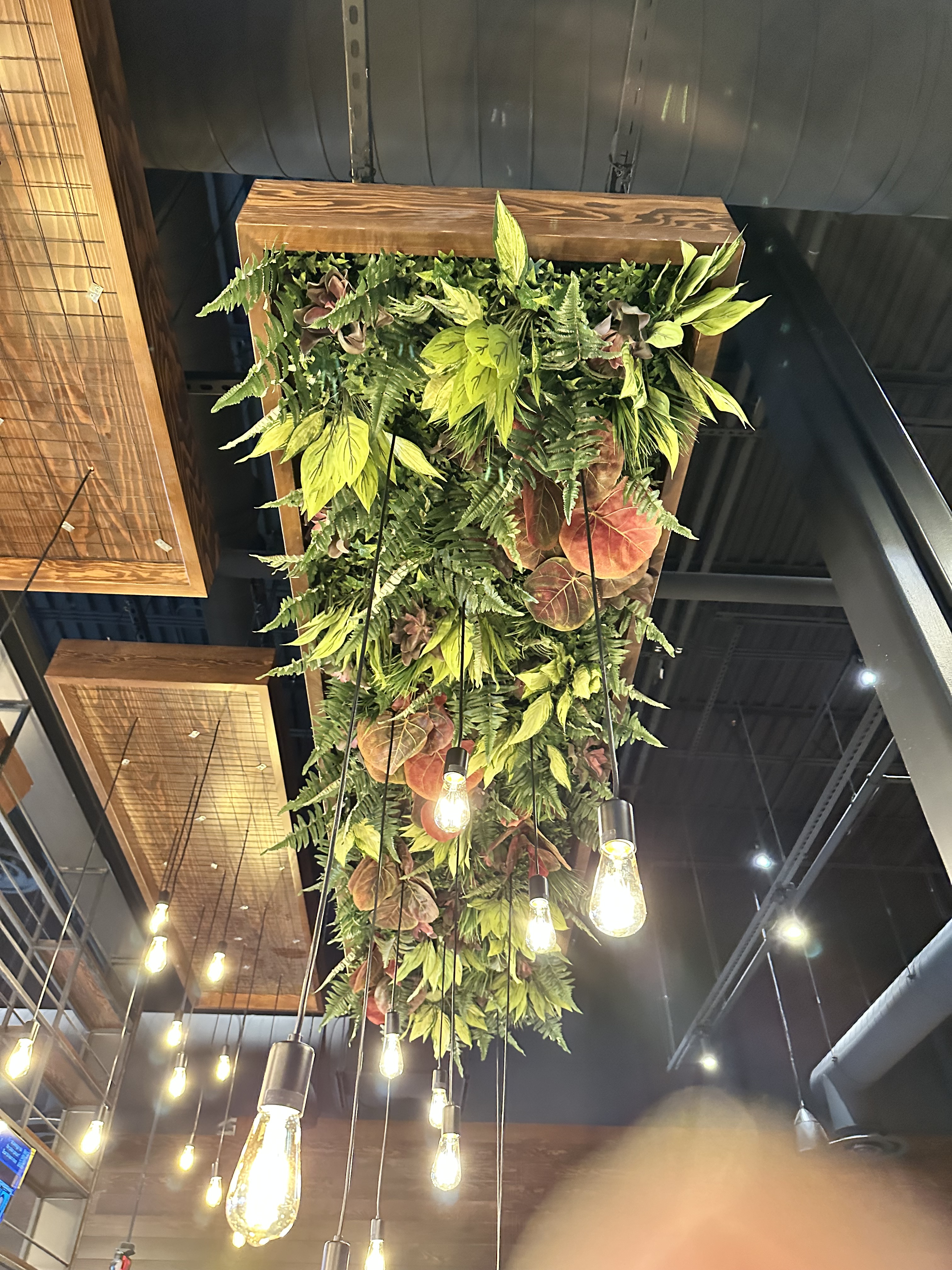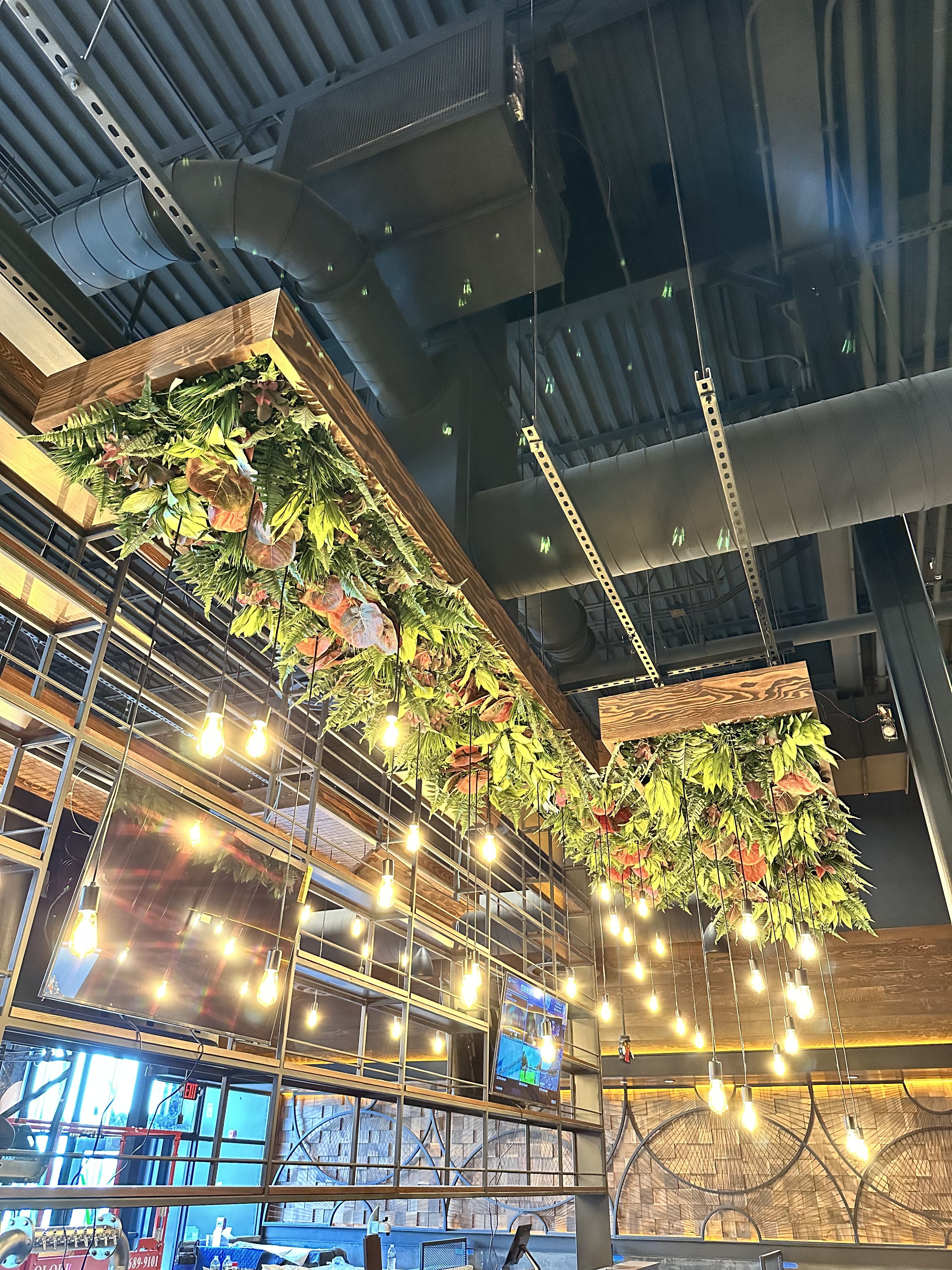 For the Jinya ramen restaurant in Totowa, New Jersey, I led the installation of faux plant materials suspended from existing overhead lighting. This project required precise coordination with the construction team, utilizing mechanical lifts on an active site to ensure the safe and efficient placement of the plants. The result was a striking design that added a unique, organic touch to the restaurant’s interior ambiance.