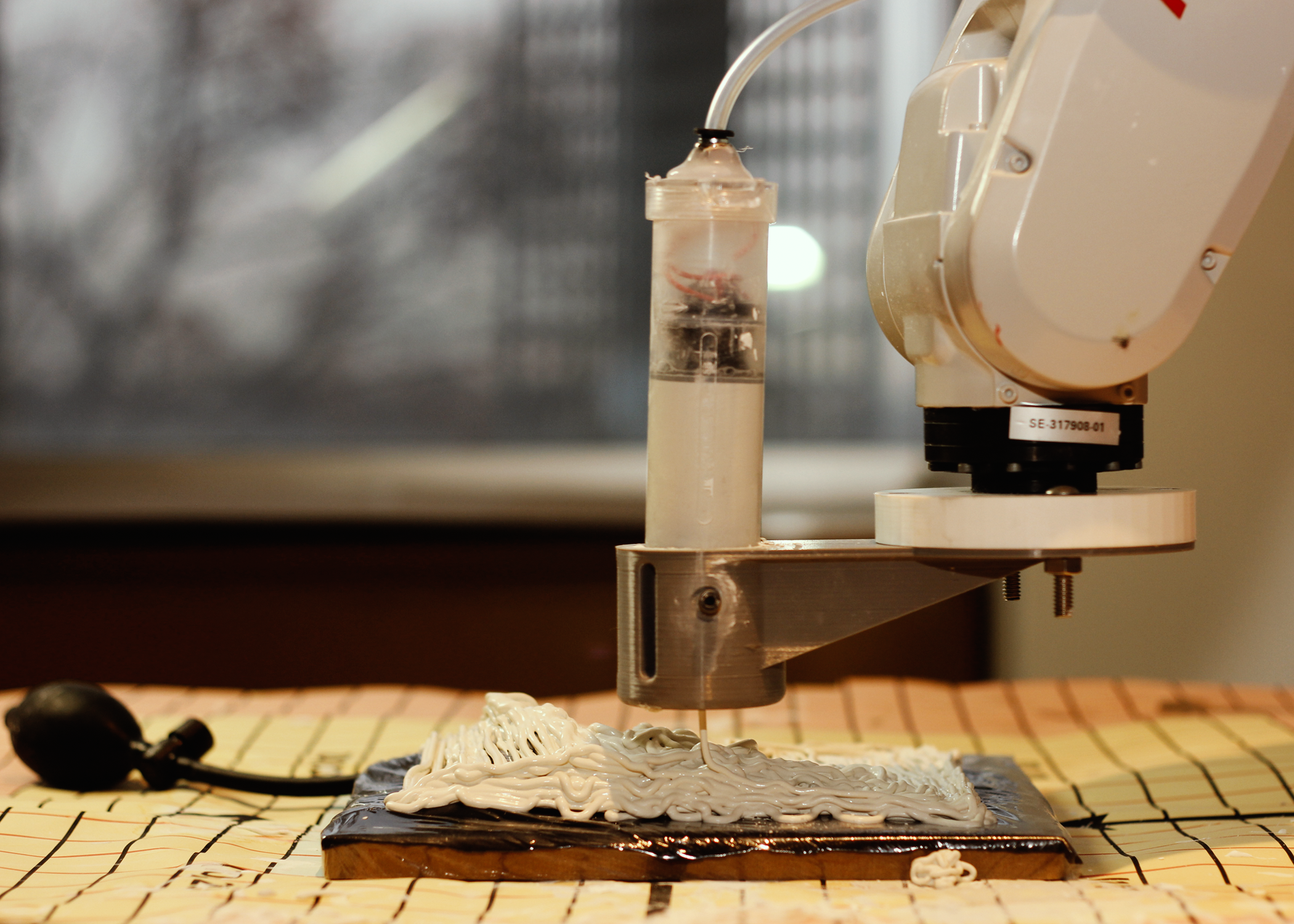 After a thorough research phase, involving the development and utilization of our pneumatic extruder, I embarked on an innovative experiment centered around the concept of “part to whole” architectural facade systems. Leveraging an inflatable pad, we harnessed the precision of our ABB robotic arm to craft a 6×6 perforated panel design aimed at enhancing buildings’ solar gain during winter and cooling efficiency in the summer. This endeavor was informed by solar analysis conducted with Ladybug. The final result was a designed individual panel that, when integrated, culminated in a cohesive and efficient facade structure.