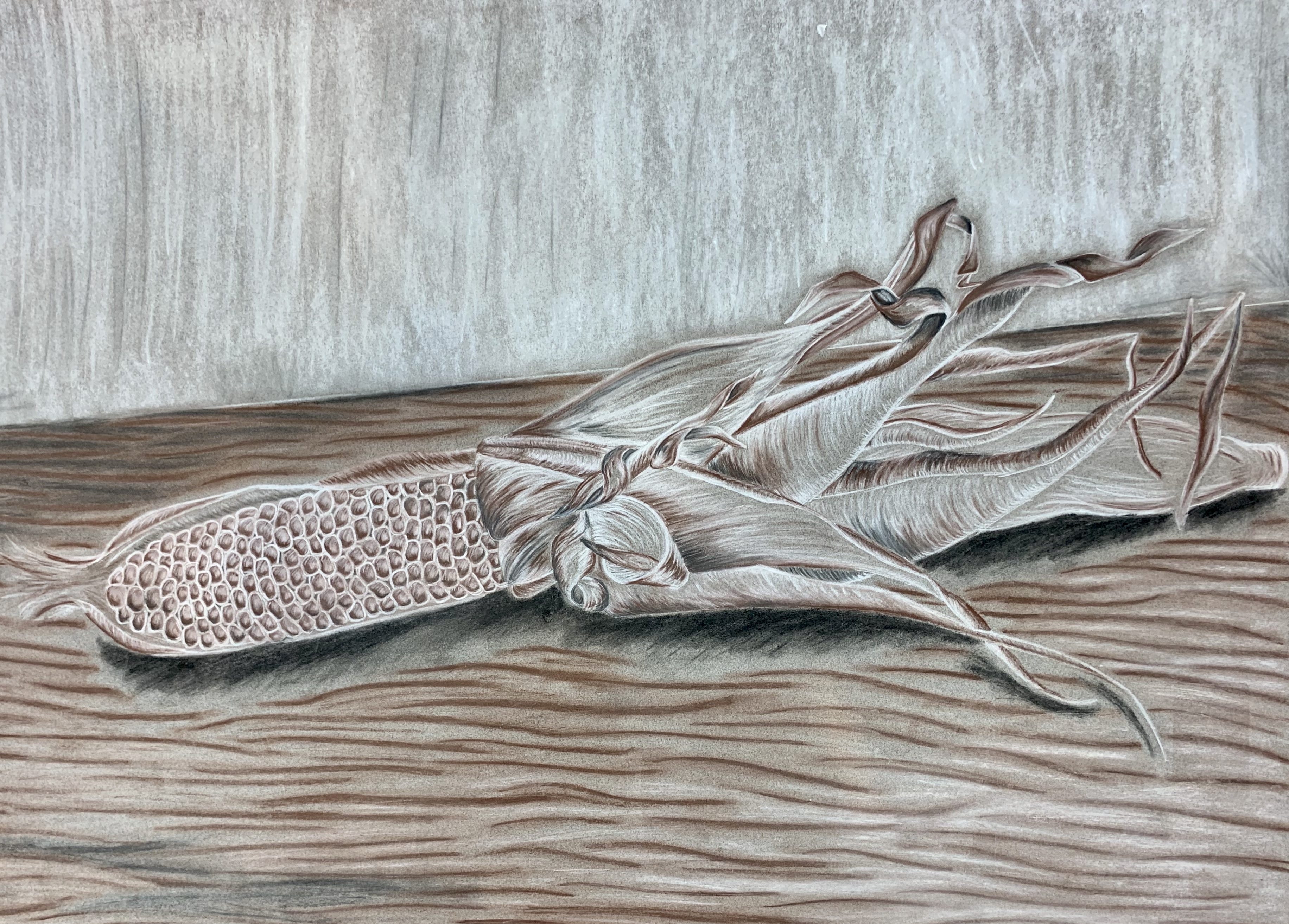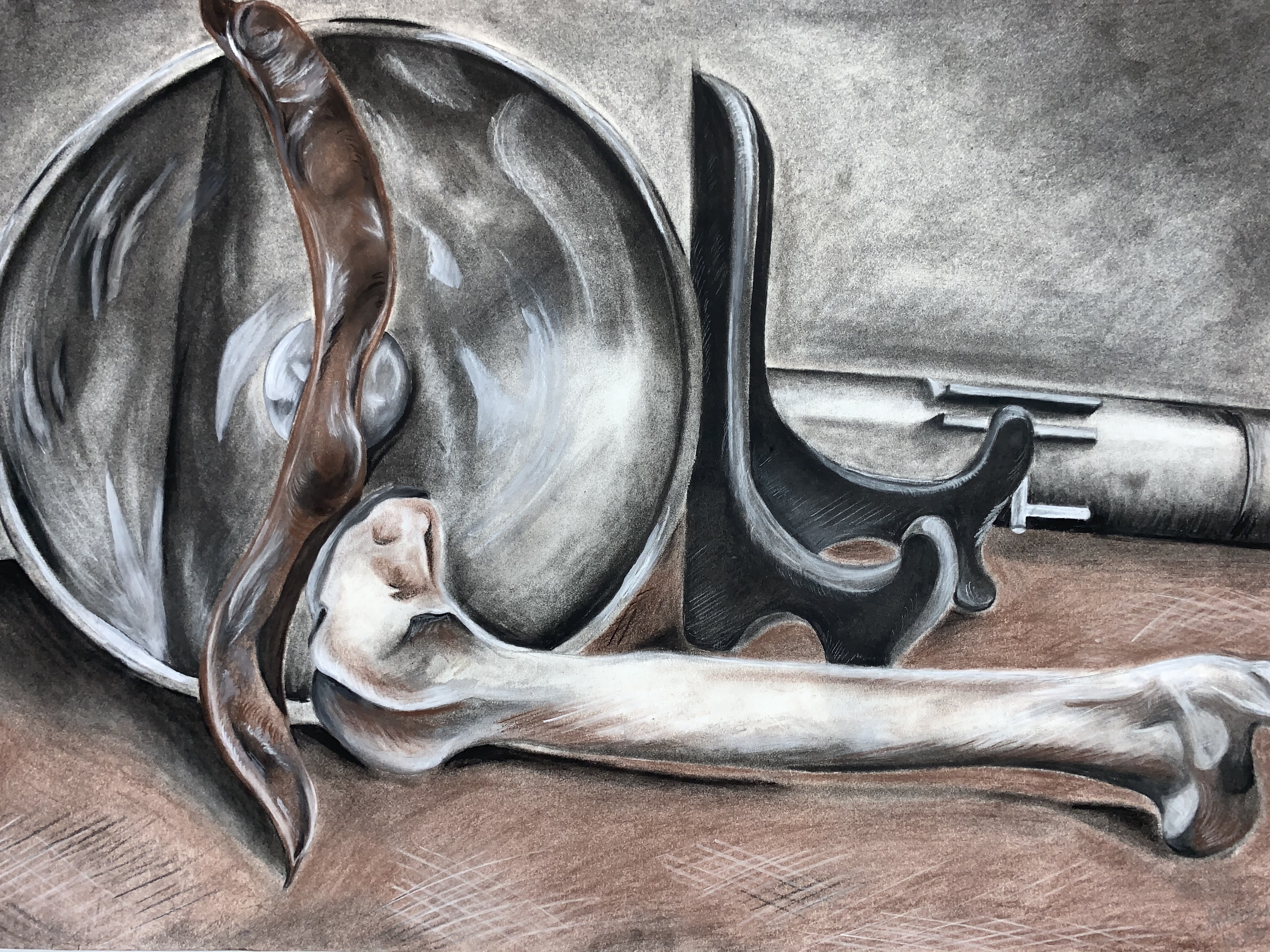 Over the years I have found myself drawn to the color combination of charcoal, conte, and chalk. This combination was introduced to me back in high school and has become my go to medium. Conte is dynamic, it accentuates the darks and creates a multitude of textures. The following art works are still life drawings created with charcoal, conte and chalk combination, and/or classic pencil to paper.