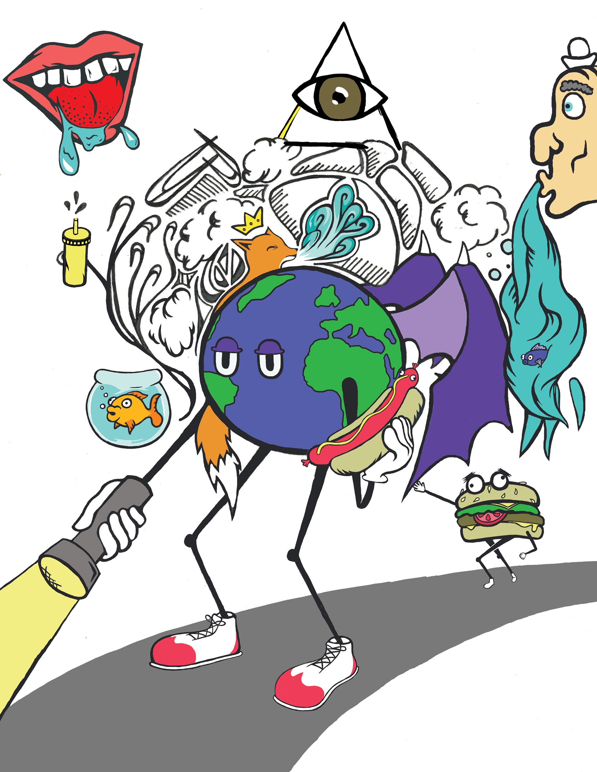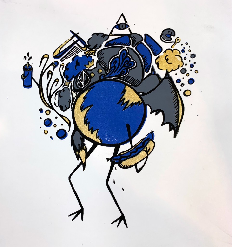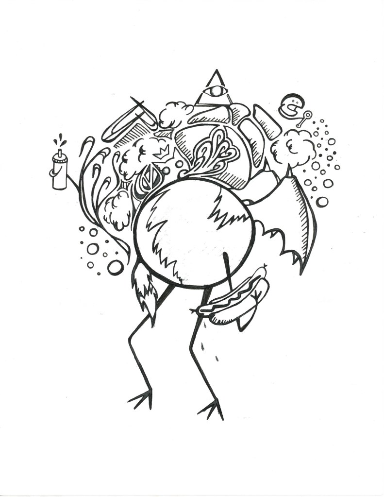A piece eight years in the making. While attending undergrad, I stumbled upon an old cartoon I had drawn in high school. I was inspired to revitalize this illustration, bringing it into photoshop to touch up and eventually screen print. After finding the photoshop document years later, I chose to expand on the design. It wasn’t until this year that I had the tools available to continue on this piece. I was finally able to expand on and complete a design that originated on the back of my math homework in 2012.